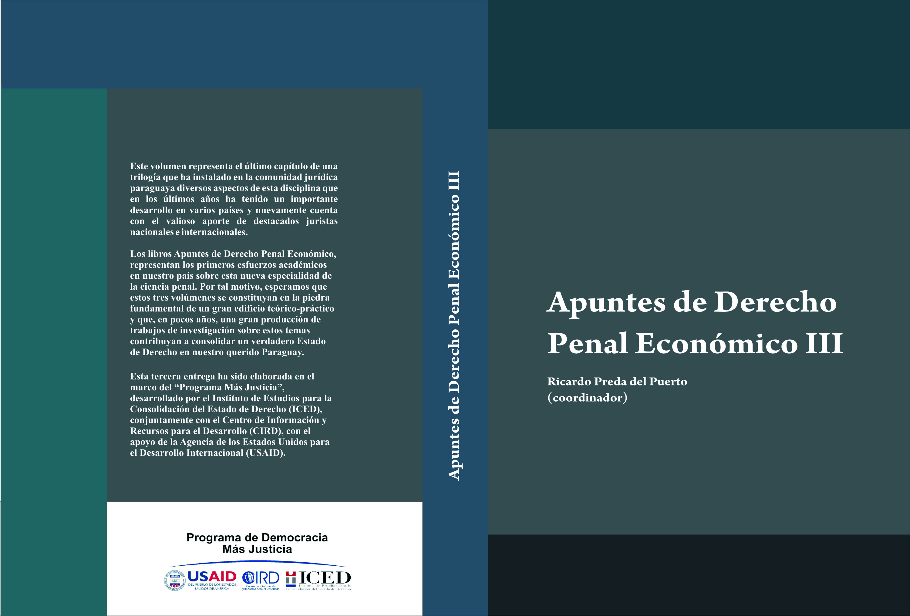 Los libros Apuntes de Derecho Penal Económico, representan los primeros esfuerzos académicos en nuestro país sobre esta nueva especialidad de la ciencia penal. Por tal motivo, espero que estos tres volúmenes se constituyan en la piedra fundamental de un gran edificio teórico-práctico y que, en pocos años, una gran producción de trabajos de investigación sobre estos temas contribuyan a consolidar un verdadero estado de derecho en nuestro querido Paraguay.